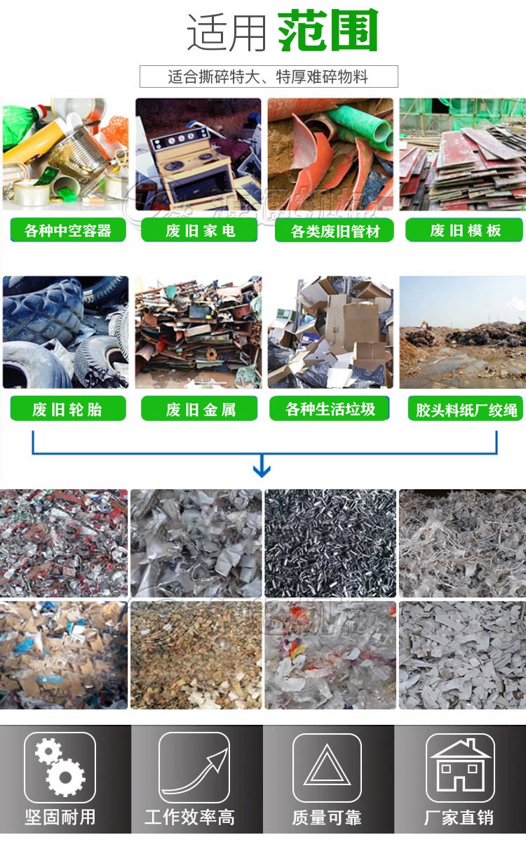 1:厚重動(dòng)刀,破碎功率高,刀具均采用合金鋼鑄造,堅(jiān)固使用壽命長(zhǎng)。